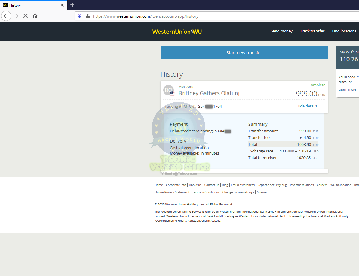 WESTERNUNION TRANSFER – 21 / MARCH / 2021 – PROOF,